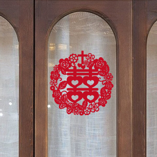 【2 Designs】 Wedding Door and Window Stickers-Rose 婚庆门窗贴-双喜玫瑰 | Christian Wedding Gifts | House Warming Decoration