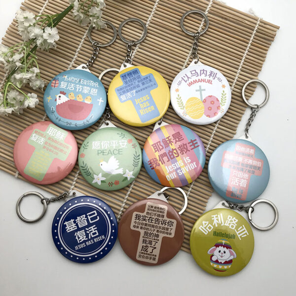【8 Designs】L size-Easter Tinplate Mirror Keychain 复活节大号马口铁钥匙扣带镜子