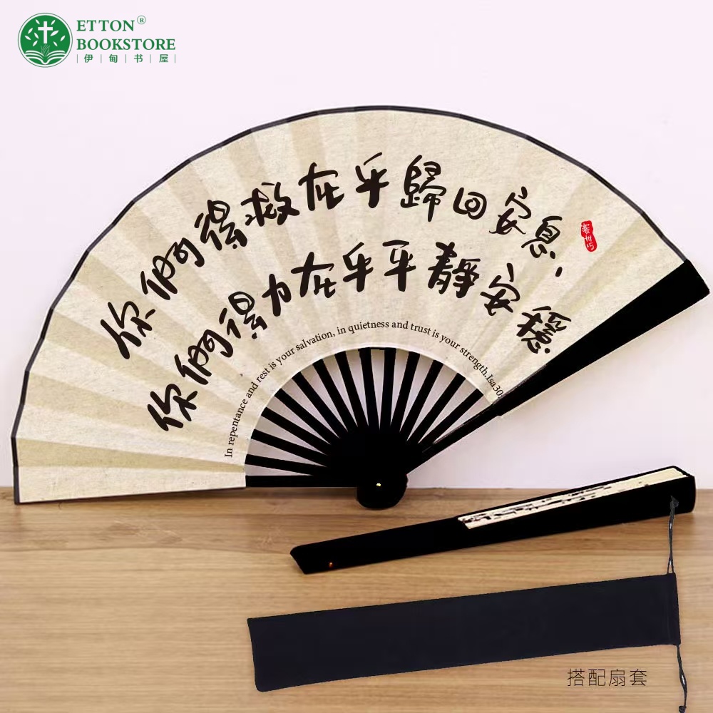 10-inch men’s Folding fan – Your Salvation 10寸男士折叠扇-得救在乎平静安稳