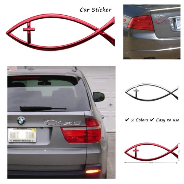 【2 Colors】3D Car Sticker – Fish-Shaped with Cross 立体车贴-鱼十字架