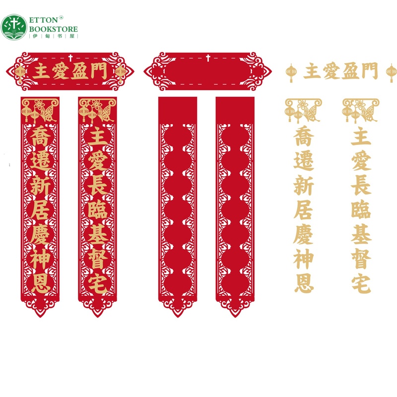 Christian Chinese Couplets with Gold 乔迁新房对联(不织布印金) – Love of God 主爱盈门 Moving To A New House
