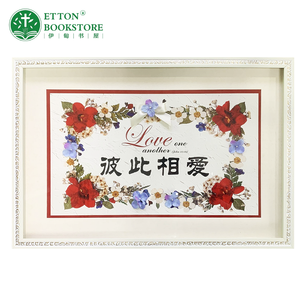 【Bilingual】Christian Wooden Frame – Love One Another With Flower Decor 木画框-彼此相爱