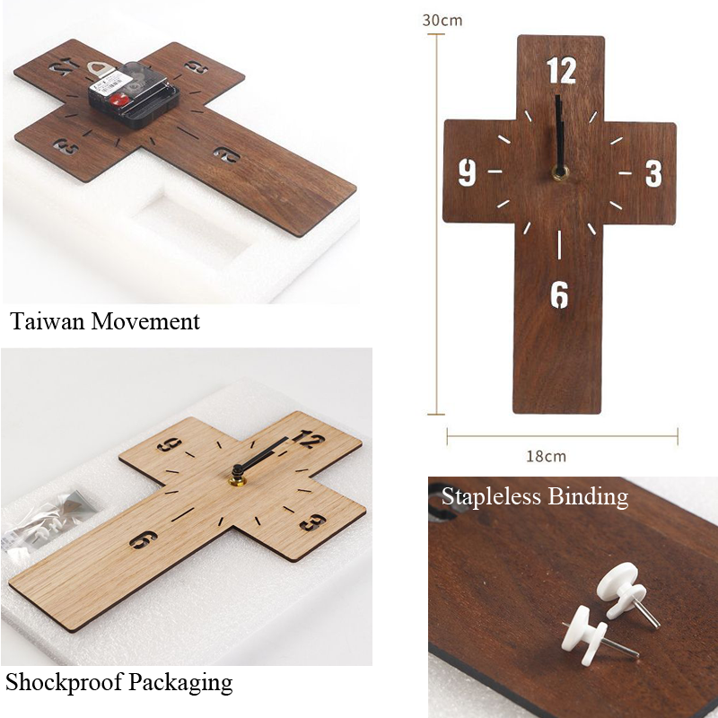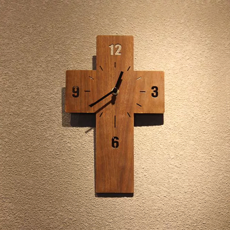 Oak Cross Wall Clock – Cherish The Time 十字架挂钟-爱惜光阴- Christian Gifts- House Warming Decor- Wall Decor