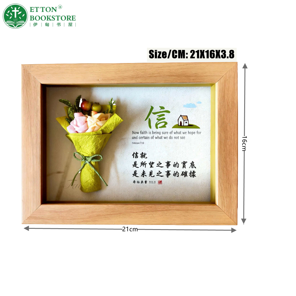 Rectangular Wooden 3D Flower Frame – FAITH 长方形立体花框 信 21X16X3.8cm