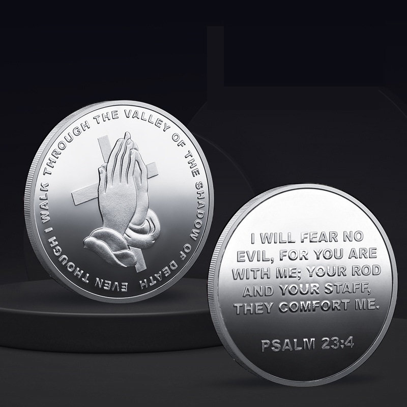 【2 色】金属纪念币-PSALM23:4 祷告手